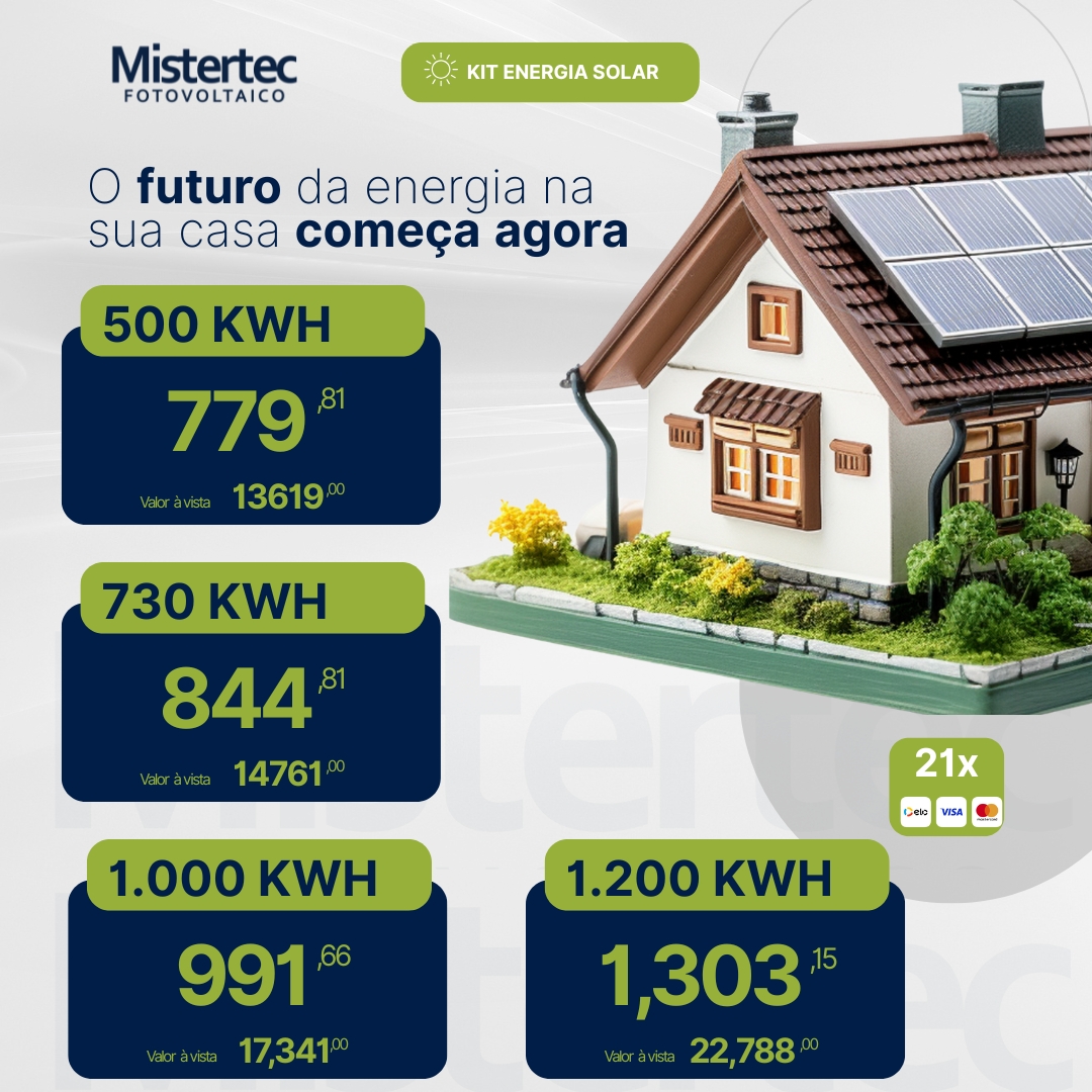 Com um kit de energia solar Mistertec, você produz a sua própria energia, reduz em até 95% a sua fatura de luz e ainda valoriza o seu imóvel com uma solução sustentável e inteligente.